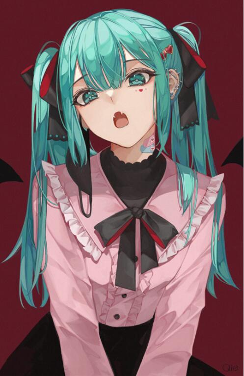 P站美图 动漫插画 初音未来 MIKU 吸血鬼@Qie_